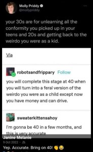 Janine – Embracing authenticity and self-acceptance. “Because one believes in oneself, one doesn’t try to convince others. Because one is content with oneself, one doesn’t need others’ approval. Because one accepts oneself, the whole world accepts him or her.” (Lao Tzu)